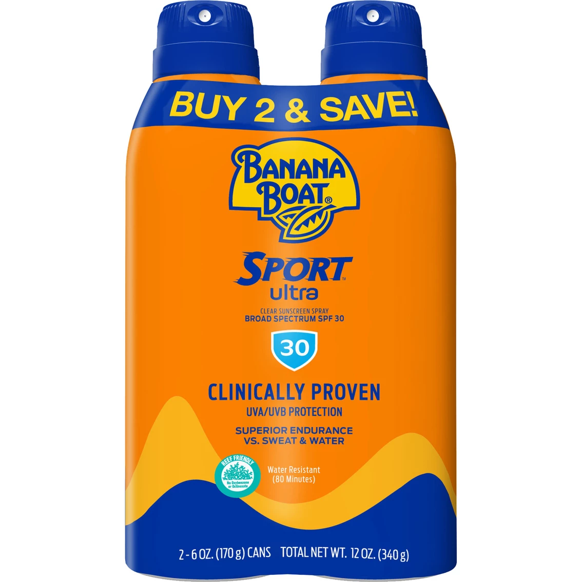 Banana Boat Sport Ultra Clear Spray Sunscreen provides strong, reef friendly protection that absorbs quickly, is non-greasy and won’t run into your eyes. These lightweight, clear sprays are designed especially for sport enthusiasts and other active individuals who need sport-strength sun protection that doesnβt play around! Banana Boat Sport Ultra Clear Spray Sunscreen has superior endurance versus sweat and water and will last as long as the fun does! Reapply this safe and effective broad spectrum UVA and UVB protection as directed on the product label. Protect the fun on earth with Banana Boat!