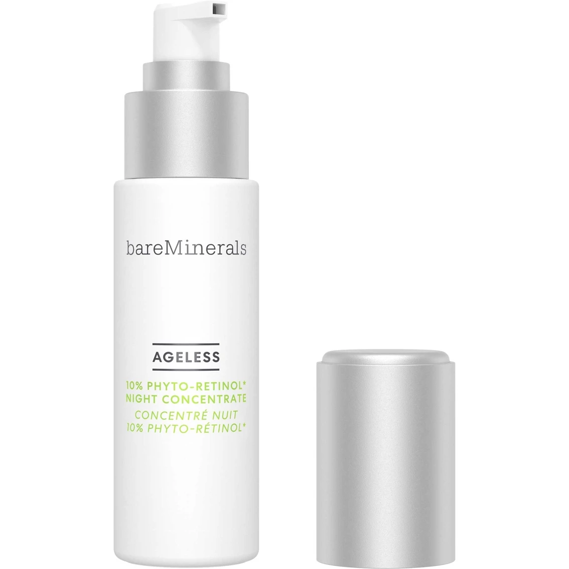 The bareMinerals Ageless Phyto Retinol Concentrate is a clean, vegan lotion with a plant-based retinol alternative that’s as effective at reducing fine lines, wrinkles and sun damage–without irritation. This potent lotion works overnight to significantly reduce visible fine lines and wrinkles and even skin tone in just one week. A plant-based retinol alternative delivers the same age-defying benefits without redness or sensitivity. Hyaluronic acid and protein peptides intensely hydrate and firm skin.