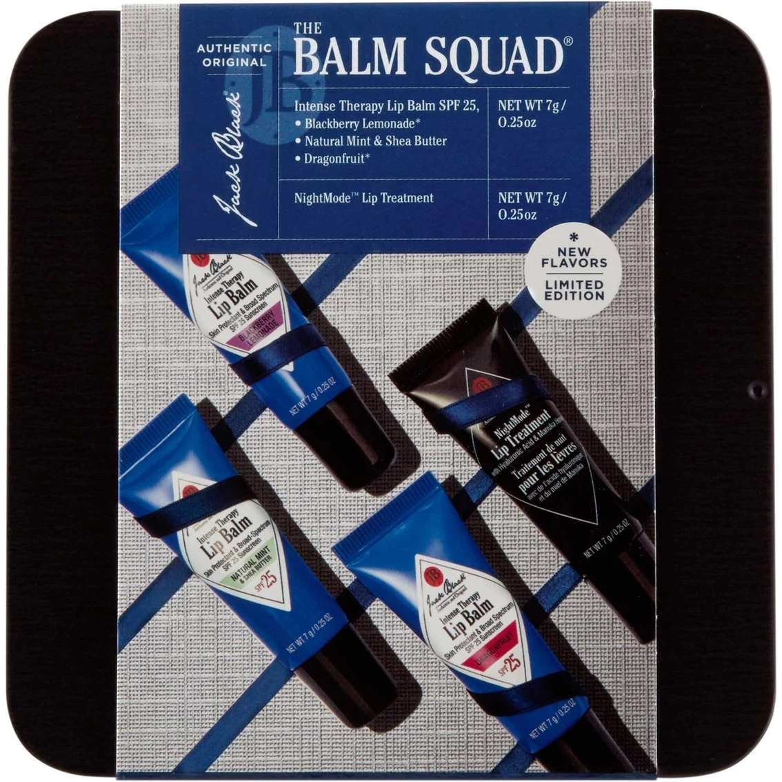 Day or night, there’s no reason to ever have dry, chapped, cracked lips again when you use the Jack Black The Balm Squad 4-piece gift set. All items are SPF 25.