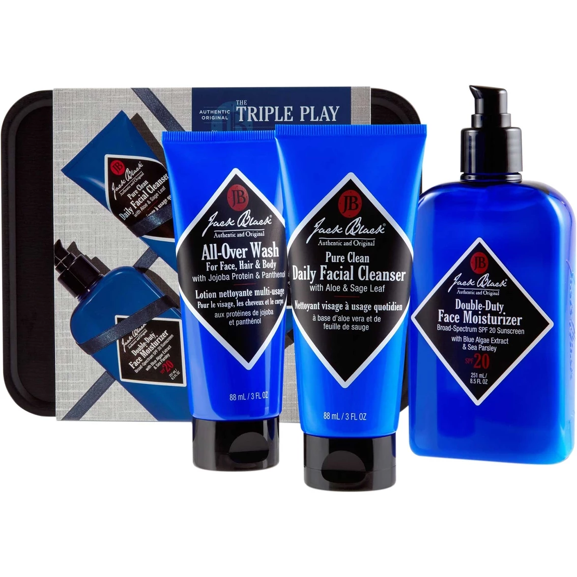 Jack Black’s The Triple Play is a full-size, best-selling moisturizer with SPF that pairs up with a face cleanser and a body cleanser to cleanse, moisturize and protect! This triple-good combo comes in an exclusive Jack Black recyclable, reusable tin.