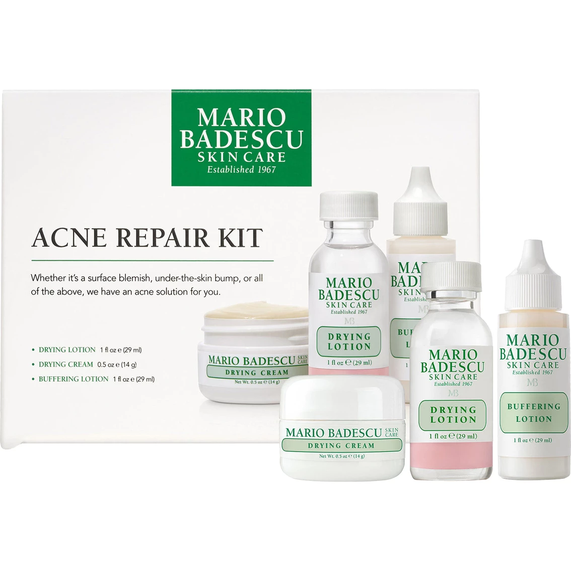 The Mario Badescu Acne Repair Kit is the must-have set that features solutions for clearer, healthier-looking skin. No two breakouts are the same — which is why different spots require different solutions.