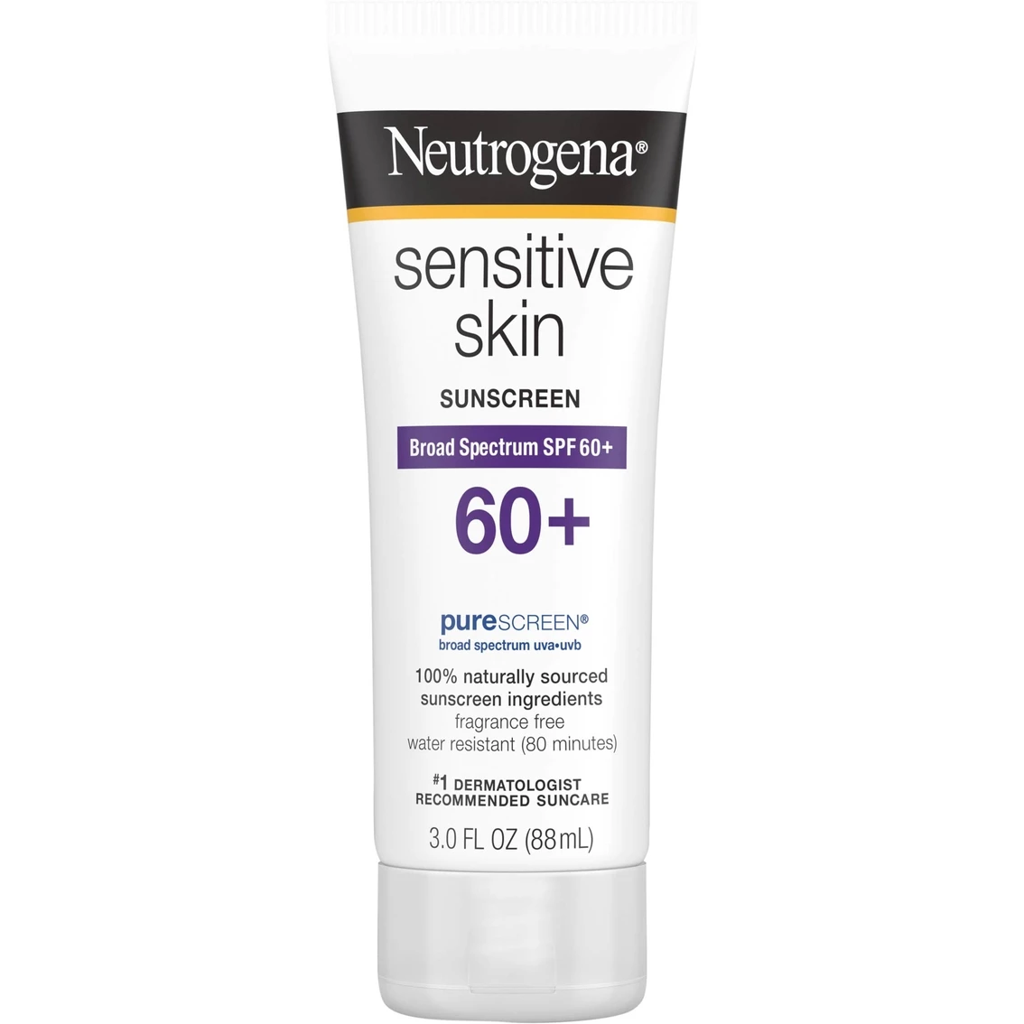 Help keep your sensitive skin protected with Neutrogena Sensitive Skin Sunscreen Lotion with broad spectrum SPF 60+. Formulated for sensitive skin, this gentle sunscreen lotion provides UVA/UVB protection to help prevent sunburn. Its formula contains Purescreen technology with 100% naturally sourced physical sunscreens, including titanium dioxide and zinc oxide. This unique blend provides hypoallergenic, fragrance-free, oil-free and water-resistant protection for sensitive skin.