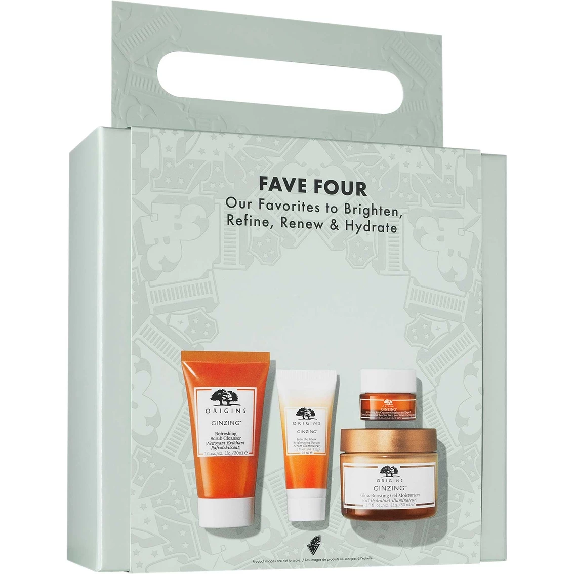 The Origins Fave Four: Our Favorites to Brighten, Refine, Renew & Hydrate is Origins’s best in glow: four GinZing favorites–including full-size moisturizer–to recharge skin for a brighter holiday. A $77.00 Value.