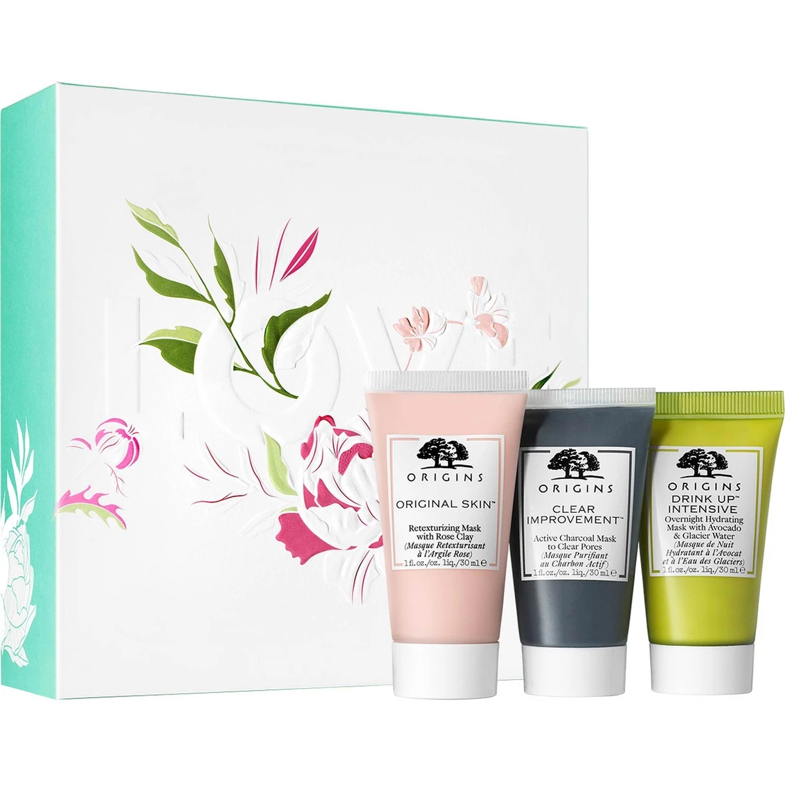 Origins’ Love and Mask is a masking trio that pampers skin with retexturizing, detoxifying and hydrating benefits.
