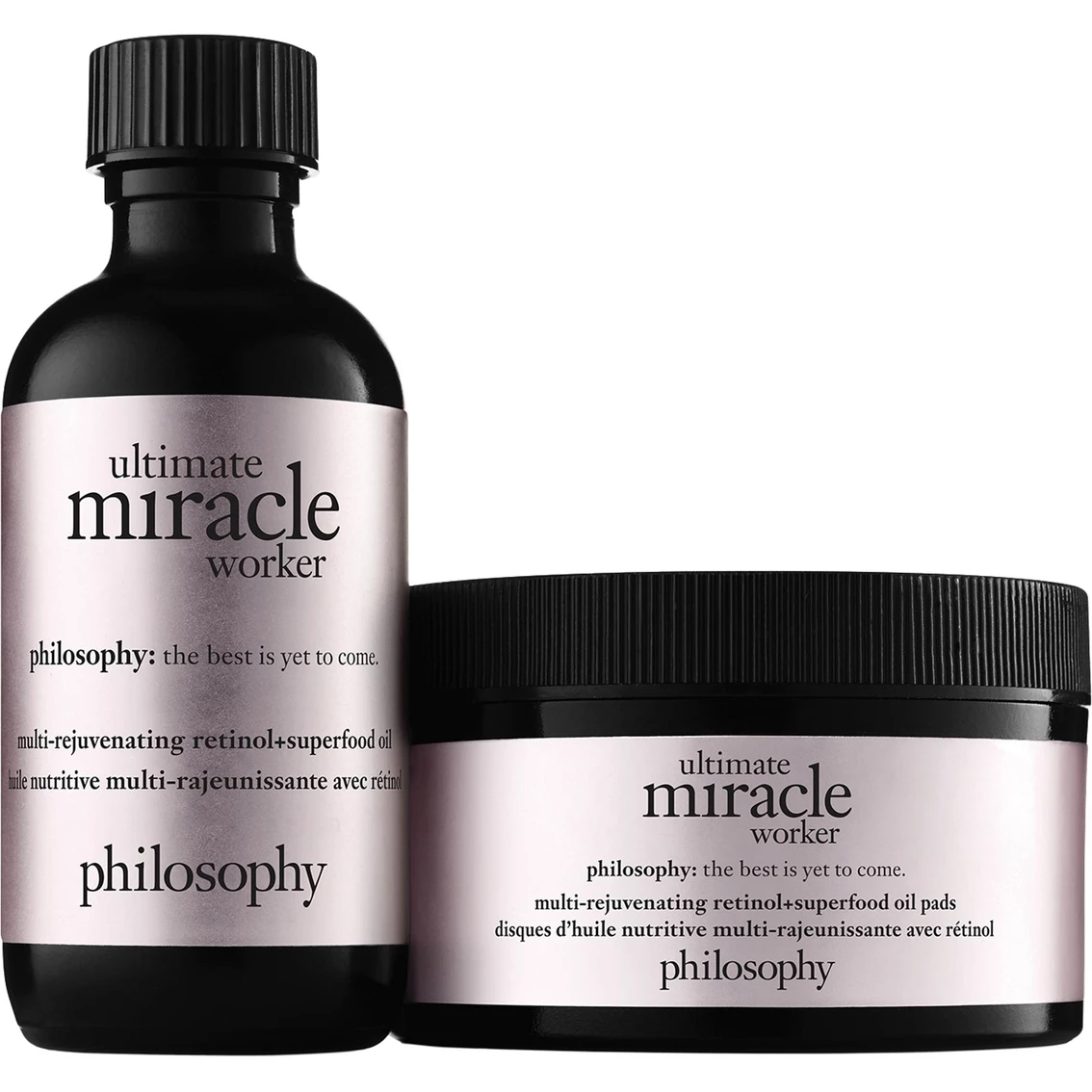 Introducing the ultimate retinol miracle, where the power of science meets nature. With the combined power of pure retinol and nourishing superfood oils, an efficacious formula was designed by Philosophy to comfort the skin. Featuring pure retinol and a retinol like complex powered by alfalfa extract to help strengthen skin’s natural renewal process. With comforting superfood oils including pomegranate, olive, argan and Amazonian sacha inchi oils, known to be rich in fatty acids, help counteract the typical irritation and dryness of retinol. Plus a healthy dose of antioxidants: potent forms of vitamins c and e help protect skin from damaging free radicals. Wake up to radiance after 1 use! Almost immediately, feel the product working on your skin. Skin feels replenished with moisture and baby soft in just 1 week. Skin feels firmer and pores are visibly reduced. 90% of women had faster surface skin renewal. Makeup looks better and better every time the product is used.
